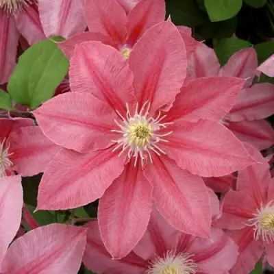 Одной из главных особенностей клематиса Литл Мермейд является его крупный цветок, достигающий диаметра 14-18 см. Цветы имеют полумахровую форму и окрашены в нежно-розовый цвет с оригинальной белой полосой посередине лепестков. Этот двуцветный эффект придаёт растению особую элегантность и шарм, а обильное цветение будет радовать вас на протяжении нескольких месяцев. Клематис цветёт дважды: в начале лета, на прошлогодних побегах, и во второй раз – с августа по сентябрь на побегах текущего года. Это делает его отличным выбором для тех, кто хочет наслаждаться цветением в разные сезоны.