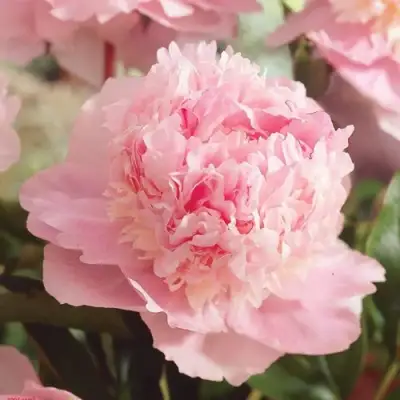 Одним из главных достоинств пиона Эденс Парфюм являются его крупные, махровые и шаровидные цветы диаметром до 18 см. Нежно-розовая окраска с белыми переливами делает цветок двухцветным и светлым, что добавляет ему дополнительного шарма. Лепестки мелко-перистые, густо расположенные, образуют мягкий на ощупь махровый ковер. Цветок обладает сильным сладким ароматом, практически идентичным запаху дамасской розы, что делает его незабываемым.
