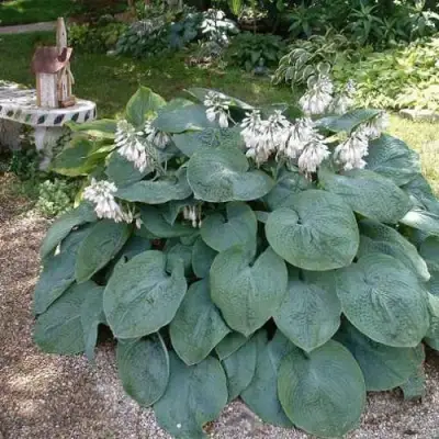 Саженцы Элеганс выделяются своими крупными, пузырчатыми листьями, которые можно охарактеризовать как широко-сердцевидные с тупым концом. Изначально сизо-голубая окраска листьев меняется на сине-зеленую к середине лета, обеспечивая зрелище, которое радует глаз на протяжении всего сезона. Листва обладает восковым налетом, что делает её не только красивой, но и устойчивой к неблагоприятным погодным условиям и вредителям.