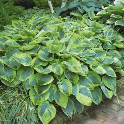 Одной из основных особенностей данного сорта является его красивые, массивные листья. Они имеют широкояйцевидную форму, достигая длины 23 см и ширины 17 см. Листовые пластины отличаются плотной и сильно морщинистой текстурой с выраженными жилками. В центре листа вы сможете насладиться зелено-голубым оттенком, а кайма выполнена в желто-зеленом цвете. Это создает великолепный контраст, который проявляется в течение всего сезона.