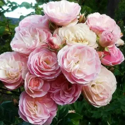 Саженцы розы мускусной Букет Парфе представляют уникальный сорт розы, который будет идеальным дополнением для вашего сада или цветника. Этот сорт особенно впечатляет своей необычной окраской цветка — светло-розовый с кремовым центром, который при полном распускании становится белым с желтым глазком. Окраска цветка очень нежная и романтичная, придаст вашему саду особый шарм.
