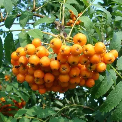 Саженцы рябины Невежинская желтая (Sorbus aucuparia Nevezhinskaya) — это уникальный сорт обыкновенной рябины, который идеально подойдет как для оформления вашего сада, так и для получения вкусных и полезных плодов. Этот высокорослый кустарник или дерево с пирамидальной, слегка округлой кроной подчеркнёт красоту вашего участка. Открытые солнечные места позволят растению раскрыть свои лучшие качества и создать эффектную шарообразную форму кроны.